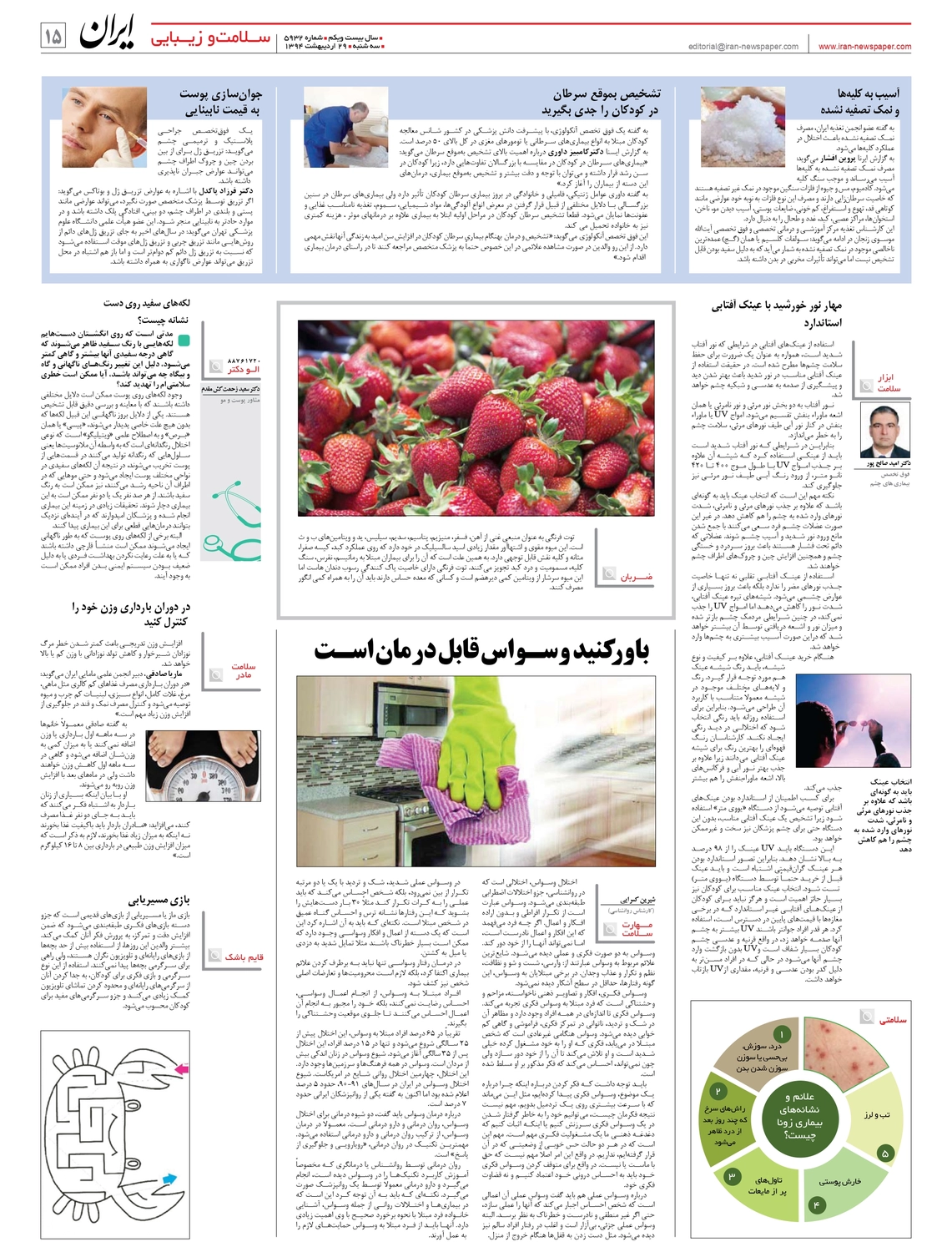 تشخیص بموقع سرطان در کودکان را جدی بگیرید- روزنامه ایران- سهشنبه ۲۹ اردیبهشت ۱۳۹۴، شماره ۵۹۳۲